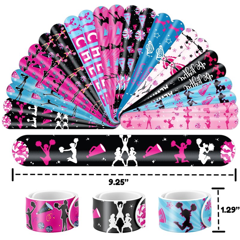 - šćVERSATILE AND PORTABLEć: Take the excitement with you wherever you go with our versatile slap bracelets. Their compact and lightweight design allows for easy carrying in your pocket, purse, or backpack. Whether at school, practice, or cheerleading gatherings, wearing them instantly adds a lively and fashionable touch to your outfit. With their energetic and dynamic appeal, these bracelets are sure to grab attention and bring smiles wherever you go. Get ready to cheer!