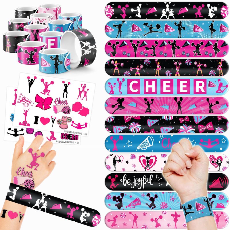š„³š£ćEXCITING CHEERLEADING PARTY FAVORS BUNDLEć: Get ready to cheer with our set of 24 temporary tattoo stickers and 24 slap bracelets. Each piece features energetic designs inspired by the CHEERLEADING theme. Suitable for both kids and adults, this bundle guarantees non-stop excitement. The bracelets measure 23.5cm x 3.3cm, ensuring a satisfying "slapping" experience as they securely wrap around your wrist. šæćDURABLE AND COMFORTABLEć: Made from high-quality materials, our slap bracelets are designed to withstand wear and tear. The sturdy metal core is covered in soft PVC, ensuring safety, comfort, and durability. With a smooth surface and no sharp edges, these bracelets provide a gentle and pleasant feeling on your skin. Designed for daily use, they retain their vibrant colors and shape, adding a charming and nostalgic touch to your accessory collection. šćEFFORTLESSLY STYLISHć: Embrace the simplicity and trendiness of wearing our slap bracelets. With just a gentle "slap," they wrap around your wrist effortlessly, creating a comfortable and stylish look. Lightweight and comfortable for extended wear, they're perfect for cheerleading events, competitions, or everyday fashion. These accessories bring a spirited charm to any occasion, capturing the energetic spirit of cheerleading. Let the cheering begin! šćVERSATILE AND PORTABLEć: Take the excitement with you wherever you go with our versatile slap bracelets. Their compact and lightweight design allows for easy carrying in your pocket, purse, or backpack. Whether at school, practice, or cheerleading gatherings, wearing them instantly adds a lively and fashionable touch to your outfit. With their energetic and dynamic appeal, these bracelets are sure to grab attention and bring smiles wherever you go. Get ready to cheer! š£ćPERFECT GIFT FOR CHEERLEADING ENTHUSIASTSć: Our Cheerleading Temporary Tattoos and Slap Bracelets make the perfect gift for cheerleaders of all ages, from young enthusiasts to seasoned professionals. Suitable for any occasion, they offer an affordable and exciting option. Whether for cheerleading events, birthdays, or as a thoughtful gesture, this cheerleading themed collection adds a fashionable and spirited element to anyone's accessory collection, invoking excitement and cherished memories.