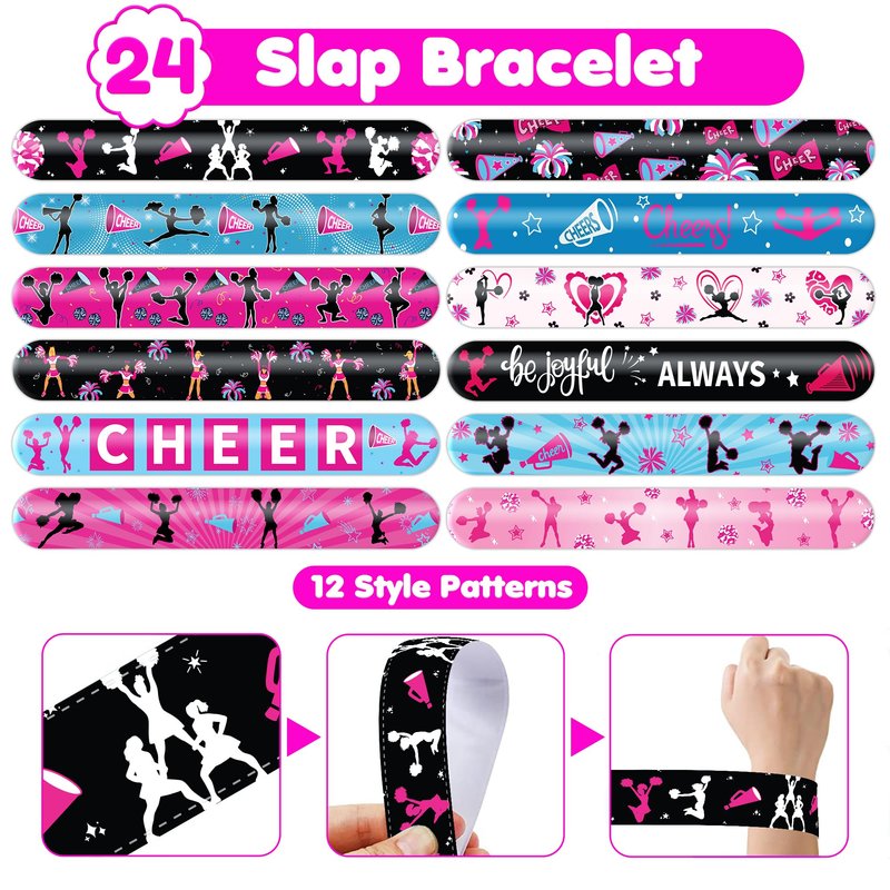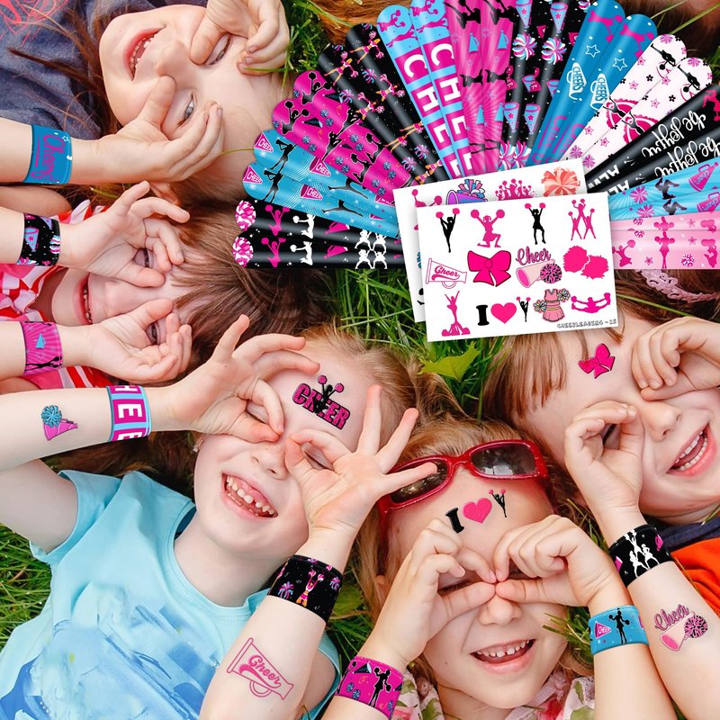 48 PCS Cheerleading Party Favors 24PCS Tattoos Stickers 24PCS Slap Bracelets Wristbands Perfect for Themed Birthday Baby Showers or Classroom Rewards Ideal Decor and Gifts for Girls and Boys