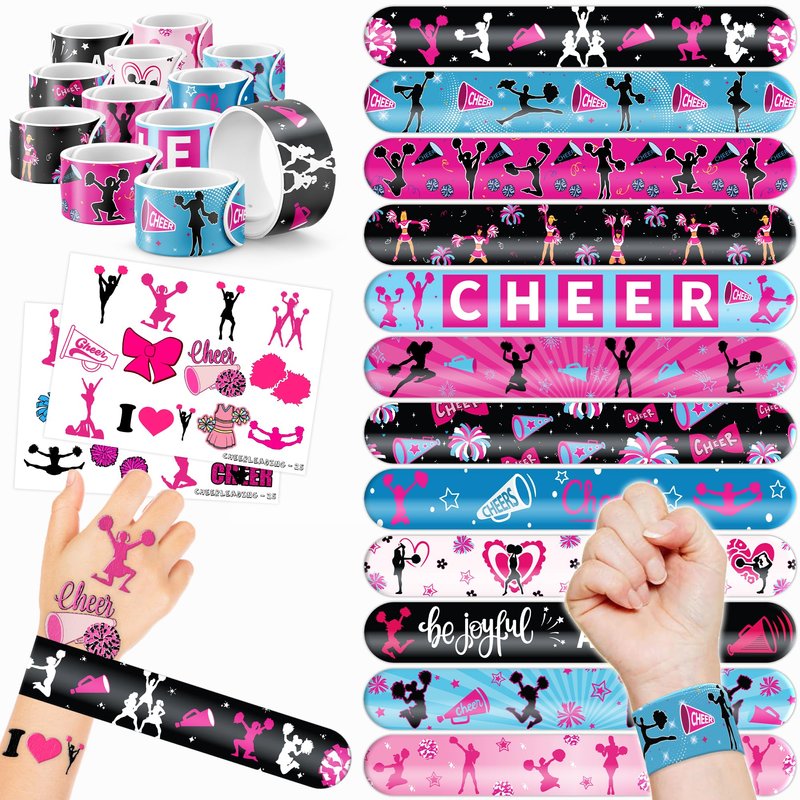 - š£ćPERFECT GIFT FOR CHEERLEADING ENTHUSIASTSć: Our Cheerleading Temporary Tattoos and Slap Bracelets make the perfect gift for cheerleaders of all ages, from young enthusiasts to seasoned professionals. Suitable for any occasion, they offer an affordable and exciting option. Whether for cheerleading events, birthdays, or as a thoughtful gesture, this cheerleading themed collection adds a fashionable and spirited element to anyone's accessory collection, invoking excitement and cherished memories.