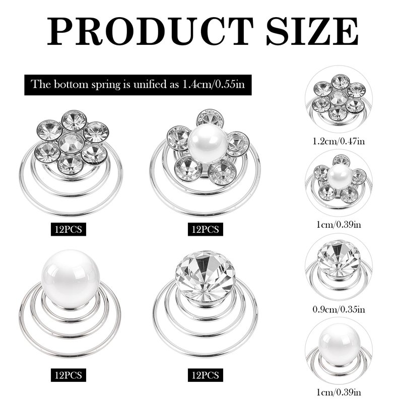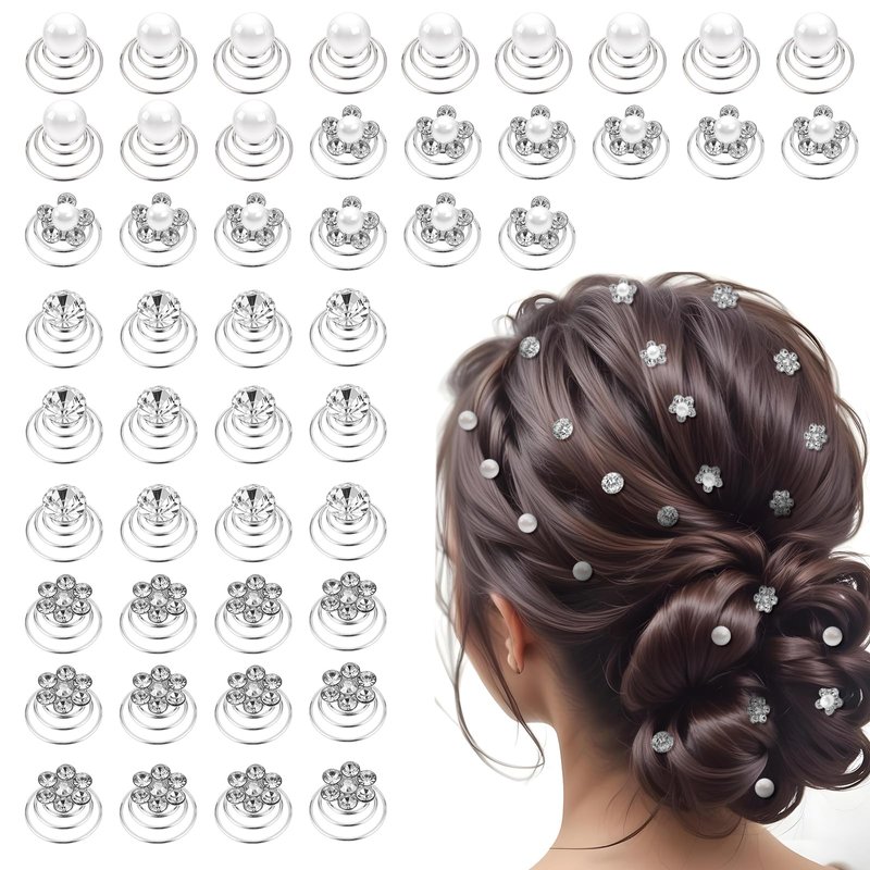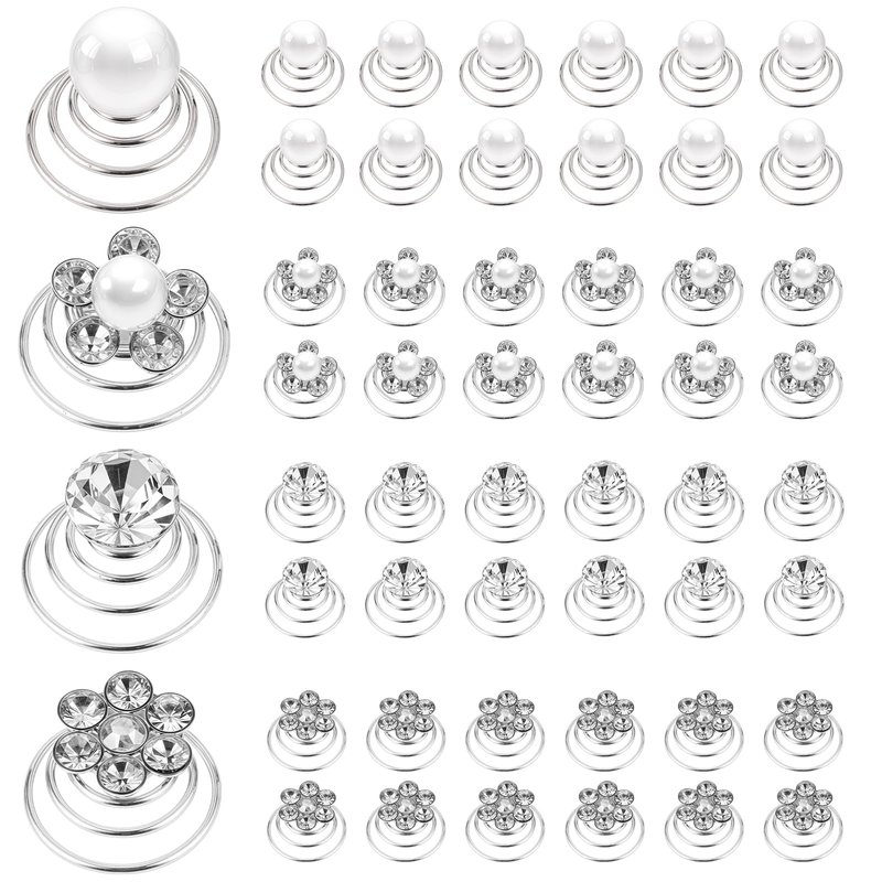 48 Pcs Crystal Pearl Twisters Spiral Set Gems Rhinestone Twister Hair Studs Bridal Rhinestone Gems Hair Pins Silver Coil for Wedding Prom Bridal Party and Special Occasion