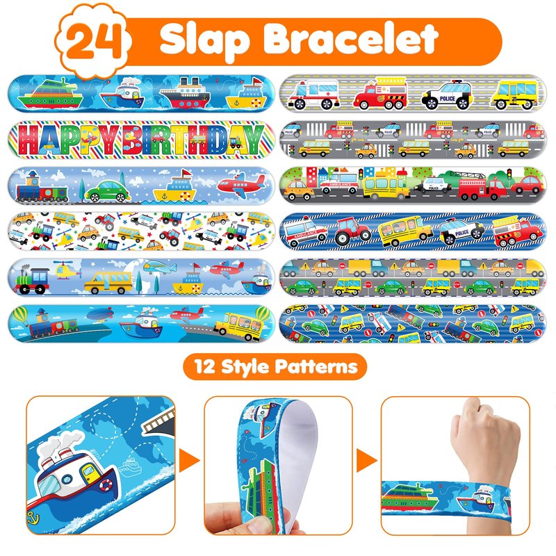 - šćEFFORTLESSLY STYLISHć: Embrace the simplicity and trendiness of wearing our slap bracelets. With just a gentle "slap," they wrap around your wrist effortlessly, creating a comfortable and stylish look. Lightweight and comfortable for extended wear, they're perfect for parties, special occasions, or everyday fashion. These accessories bring a playful charm to any gathering, capturing the joyful spirit of the TRANSPORTATION theme. Let the festivities begin!