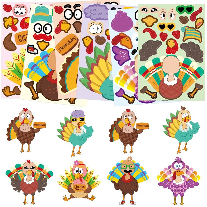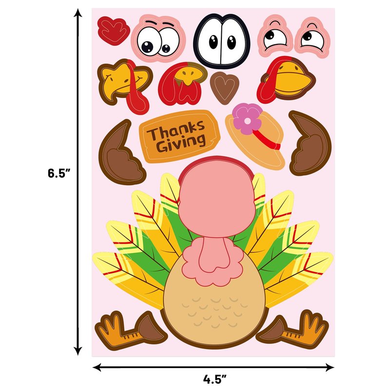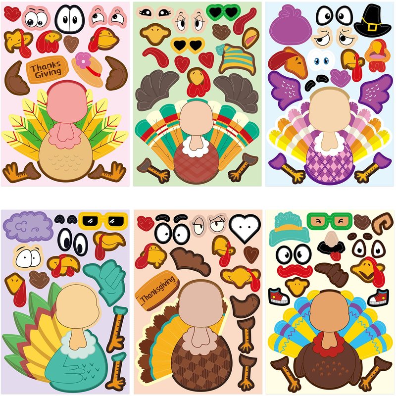 - Package Includes: 48 fun Make-A-Turkey Sticker sheets in 6 different styles; Each size is 6.5 x 4.5 inches; Enough quantity and designs for DIY and decoration