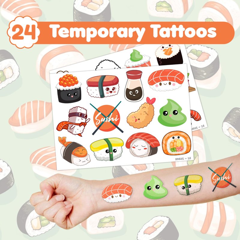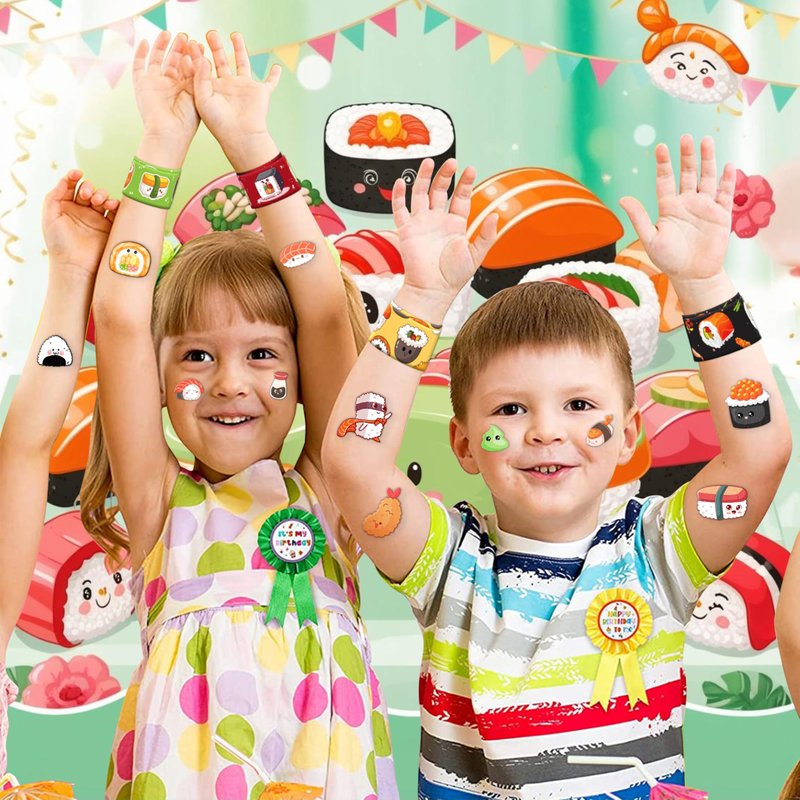 - Style: Sushi temporary tattoos; Sushi party favors; Sushi birthday party supplies; Sushi birthday decorations; Sushi slap bracelets