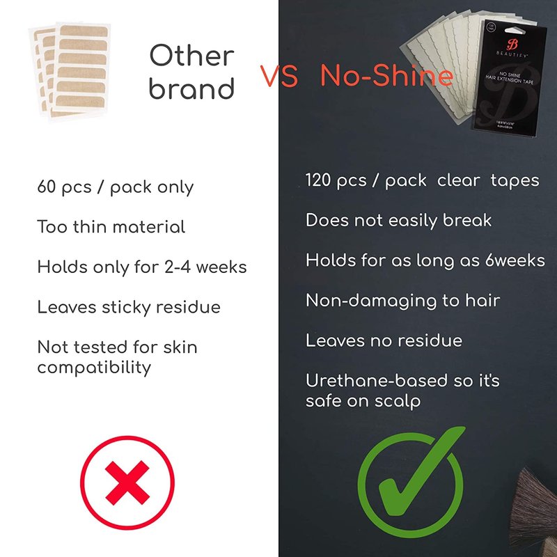 - ✔ EASY TO APPLY: Double sided tape for expansions tabs are pre-cut, so there’s no stress approximately having sticky scissors. The liner is white but the genuine extention tape is evident so you're beyond any doubt that the wrap up will be natural-looking! No Shine is known for its adaptability, and quality, making it simple to apply on hair wefts.