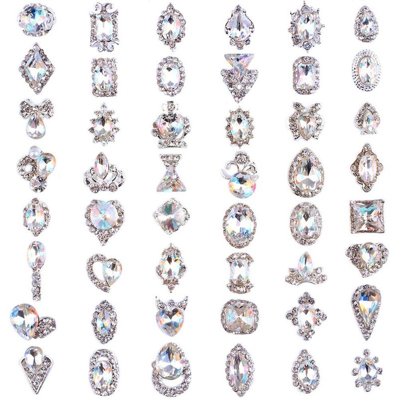 48PCS 3D Luxury Nail Art Rhinestones Nail Diamonds Glass Crystal AB Metal Gems Jewels Stones for DIY Nail Art Work Design Decoration Craft Jewelry Making
