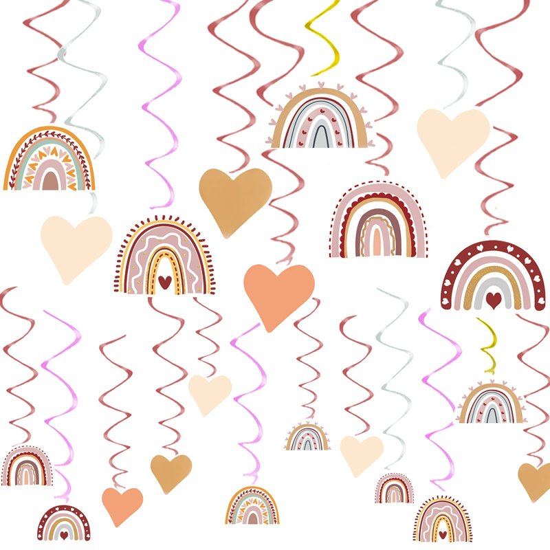 - Impress Your Guests: Come on! Just enjoy the rainbow party, boho colors, warm and pastel atmosphere. This boho baby shower decorations set is perfect. Hang or stick the boho rainbow party decorations to the ceiling, wall, window, mantel, tree branches, archway and other places, they are amazingly beautiful in the light. Boho rainbow party decorations will add a delicate and lively touch to your house. Hanging swirl decorations will make your birthday party more attractive to your guests