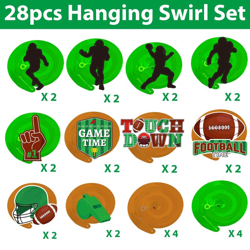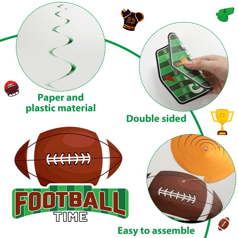 - 【Multiple Occasions】Our football hanging swirls party kit can be use on your birthday party. It is suitable for hanging on the ceilings, doorways, arches, patios, windows, courtyards, mantelpieces, branches, balconies and other places you like. Football birthday hanging swirls set will add a fresh color to your life.