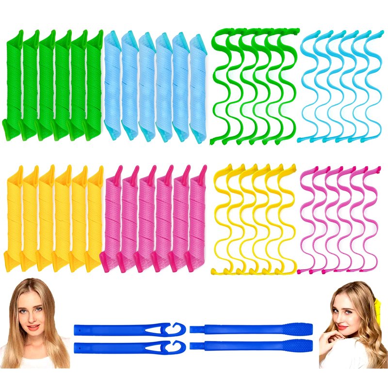 48PCS Hair Curlers Heatless Magic Hair Rollers Wave and Spiral Curlers with 4PCS Styling Hook Kits