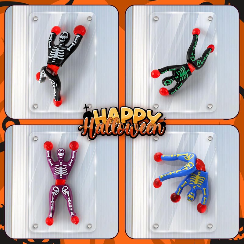 - Halloween Party Favors for Kids: Our Halloween super value pack set 48pcs sticky wall climbing men toys with 6 styles in 3 colors(Purple, blue and black). These Halloween toys are enough for kids to have fun with their friends and make a lasting impression on Halloween holiday
