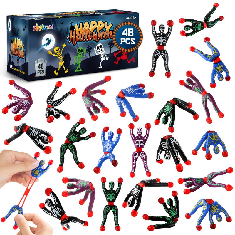 - High Quality & Safety: Our sticky toys are made of TPR, nontoxic and safe for kids. These sticky toys' hands & feet & waists have small glue balls which have good resilience and can extended flexible. Each piece is wrapped separately, a thoughtful Halloween Party Favor Supplies for Kids. These Halloween toys bulk are suitable size for children to use