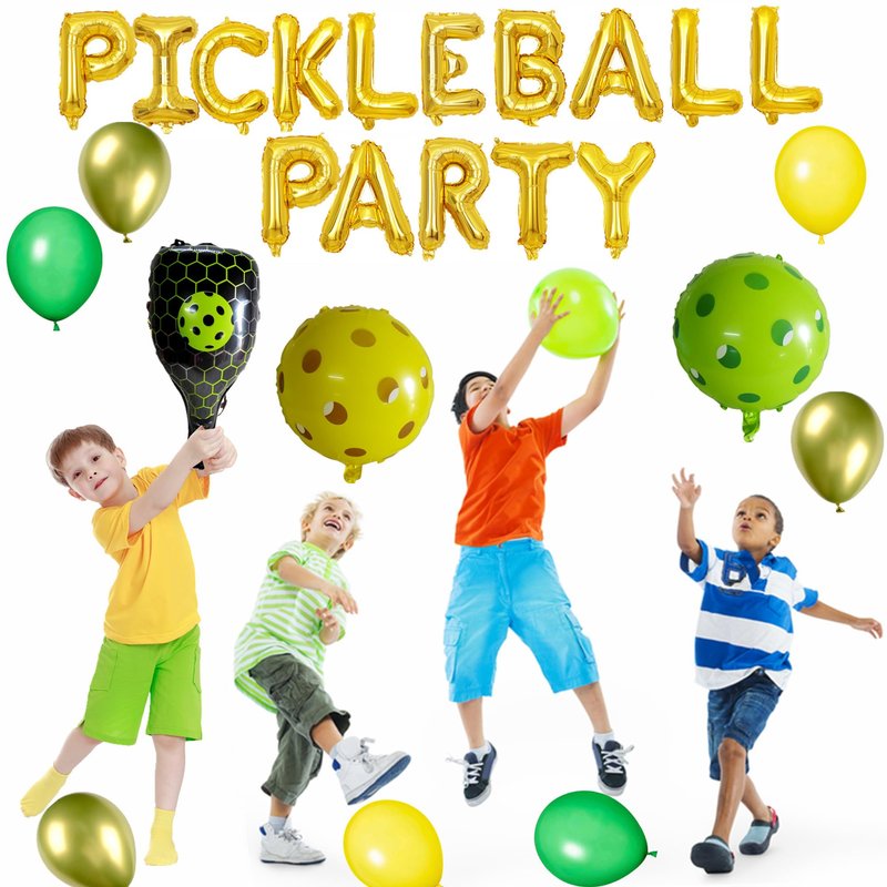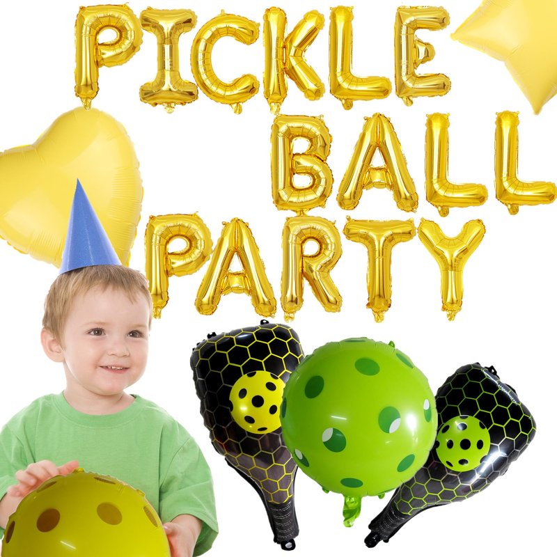 - Pickleball Party Decorations: This party decoration set includes 15 pieces 16inch gold letter balloons "Pickleball Party" , 2 pcs 18 inch star balloons, 2 pcs 18 inch heart balloons, 2 pcs 18 inch pickleball balloons, 2 pcs pickleball racket balloons, 24 pcs 10 inch latex balloons, 1 pc 10M balloon ribbon, 1 pc 5M balloon chain, making it the ideal gift for yourself, your kids, or your friends.