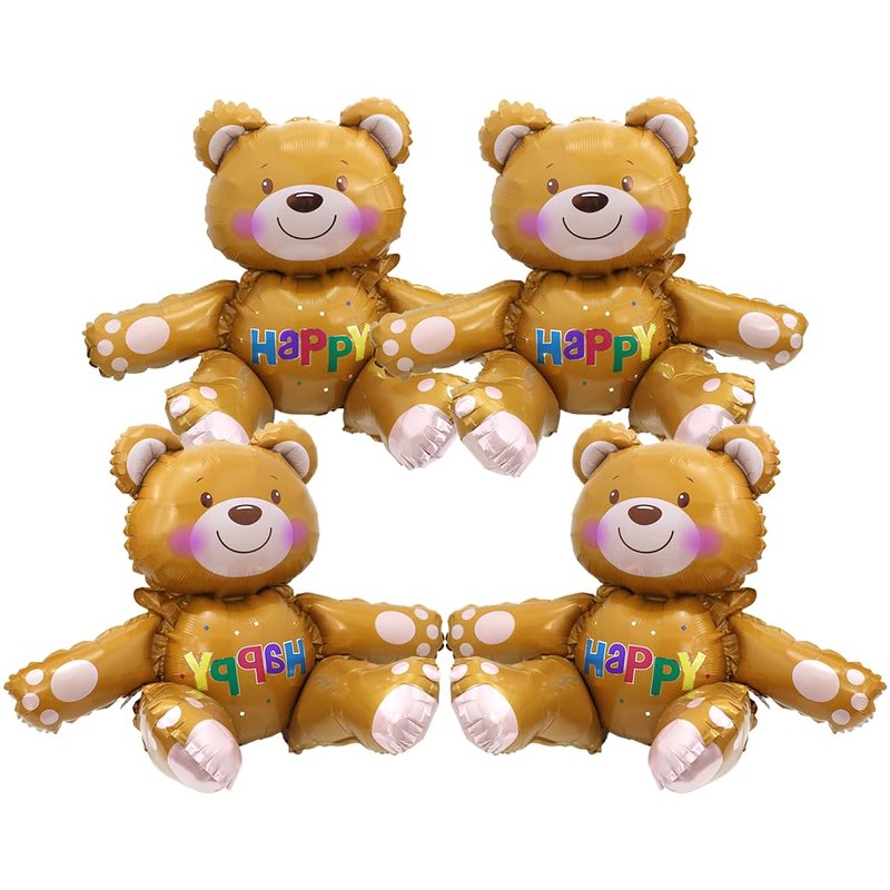 - 4 PCS 4D HAPPY BEAR BALLOONS, BROWN TEDDY BEAR PARTY SUPPLIES ★ 4 pack woodland jungle safari animal bear balloons, realistic teddy bear mylar foil balloon, uninflated size is around 28.7'' (73 cm) width * 22.3'' (59 cm) tall (it is around 23'' when inflated, see picture for size), double side printed & more thicken than other.