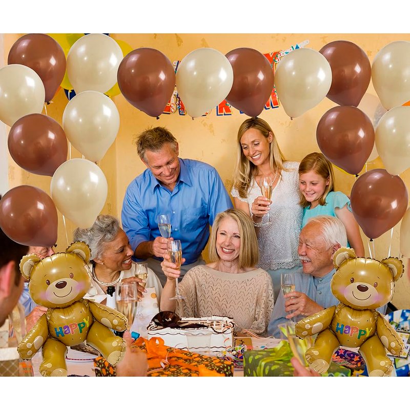 - TEDDY BEAR BABY SHOWER DECORATIONS, BIRTHDAY PARTY SUPPLIES ★ Happy brown bear balloons party supplies, can be decorated indoors or outdoors, ideal for animal themed party, tropical summer party, birthday parties, bachelorette parties, graduation ceremonies, carnival parties, class reunions, Christmas decorations, baby showers and other festive party events. It can also be used as a holiday decoration to decorate your home to make the family atmosphere happier. It can also be combined with other balloons to form creative decorations.