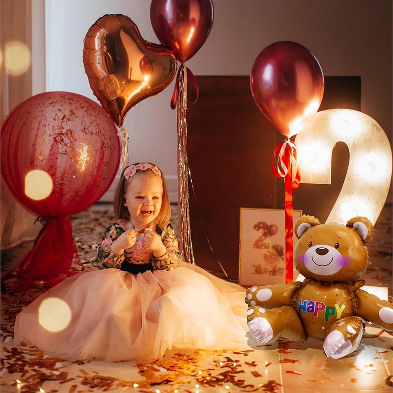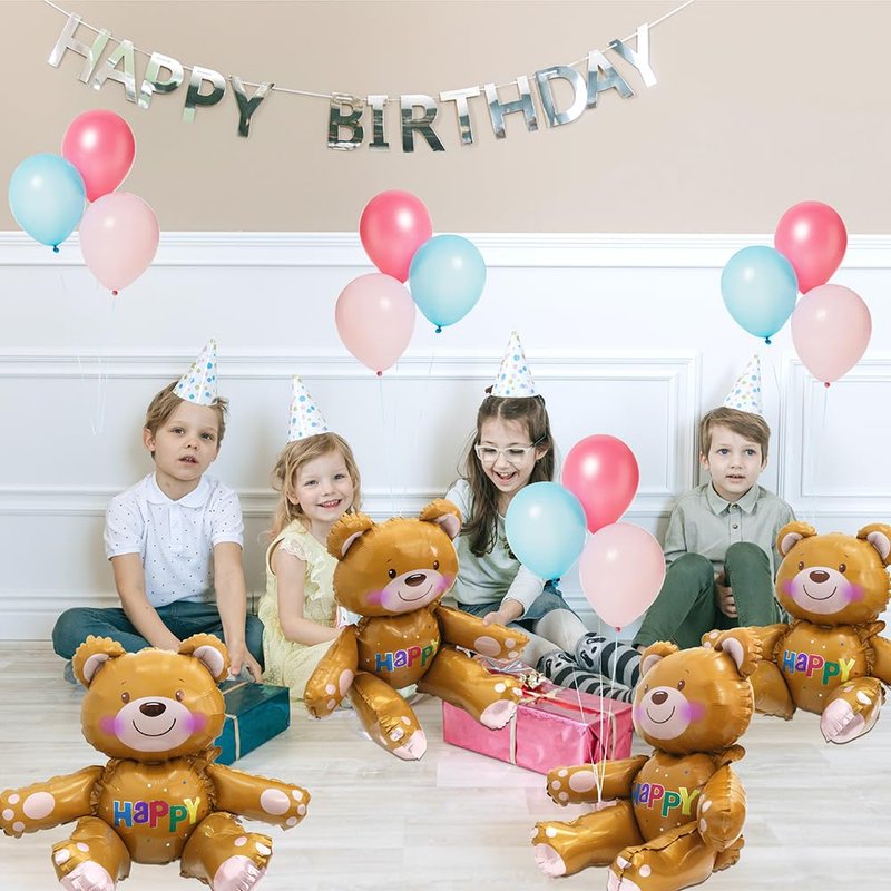 Hokilands 4D Teddy Bear Balloons Bear Party Supplies Birthday Decoration Kit create one new bear mylar foil balloons for kids, boys, girls and all ages.