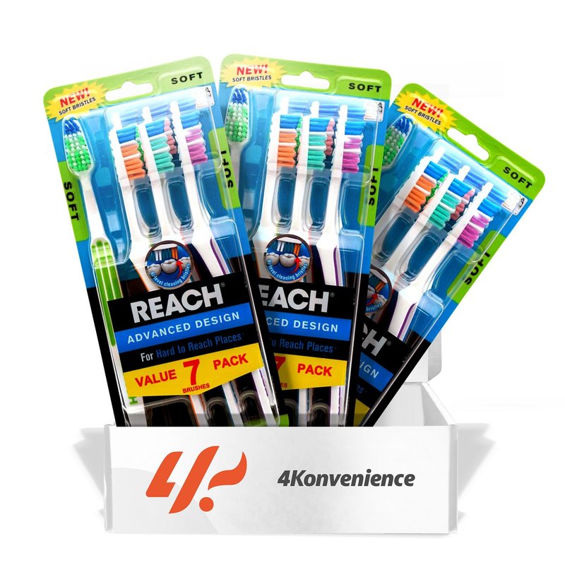 4K Logistics Reach Advanced Design Adult Toothbrush with Soft bristles (3 Pack of 7 Count Each) | Effectiveness, Softness & Cleaning | Hygiene Routine | 21 Count Total