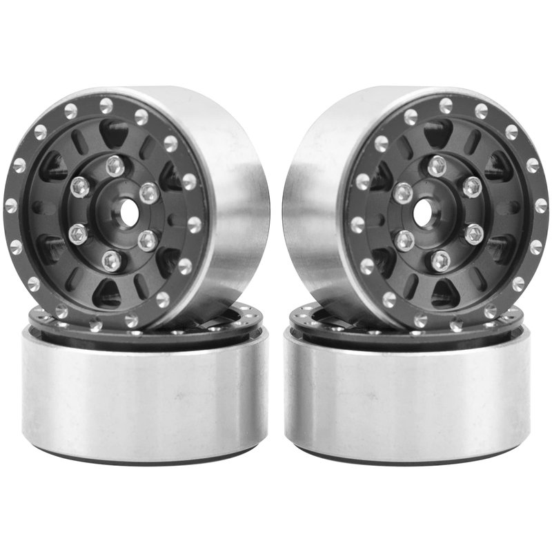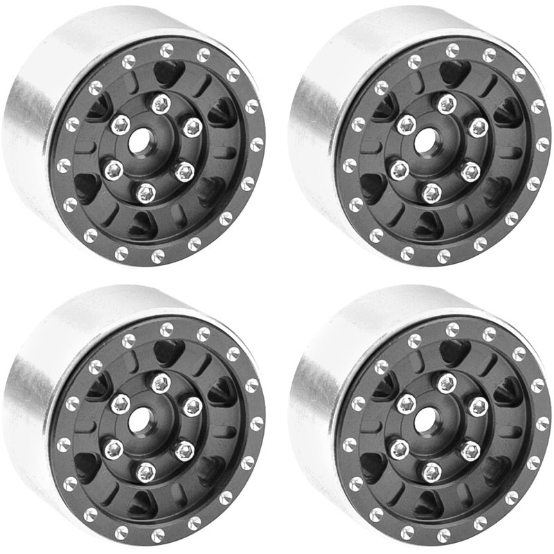4Pack HIRCQOO 1.0" SCX24 Beadlock Wheels Rim 7mm Hex Wheel Rims Compatible with Axial 1/24 AXI90081 AXI00002V2 C10 Gladiator RC Micro Beadlock Wheels Crawler Car (Black)