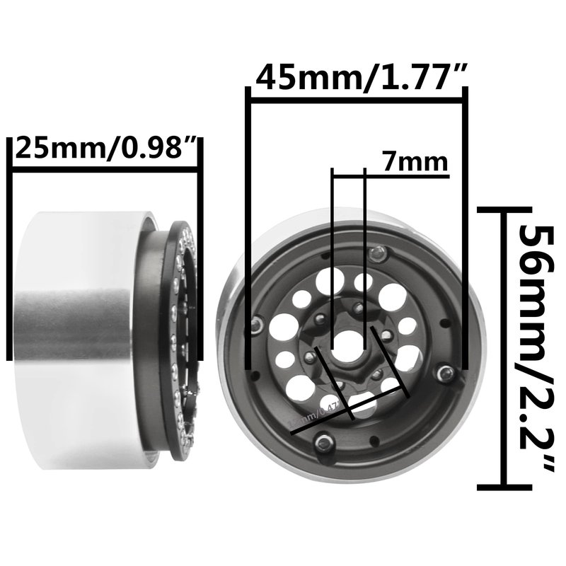 The 1.9 inch wheel rims made of metal material,CNC machined for high precision,strong and sturdy.