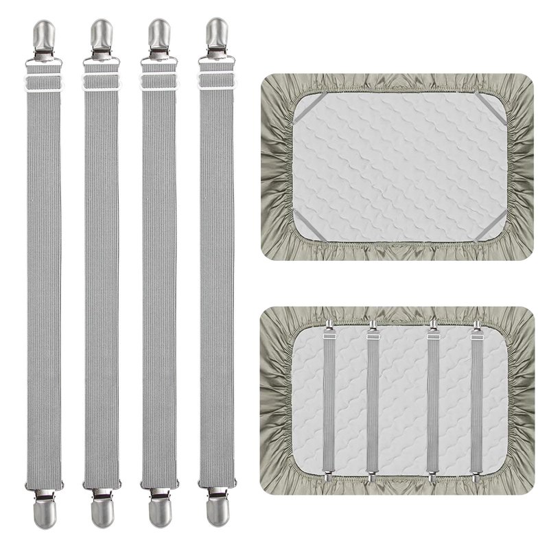 4Pcs Adjustable Bed Sheet Straps Clips, Elastic Mattress Sheet Fasteners Holder and Suspenders, Grippers to Hold Sheet, Mattress, Sofa, Couch, Table Cloth, Recliner Ironing Board Cover and More