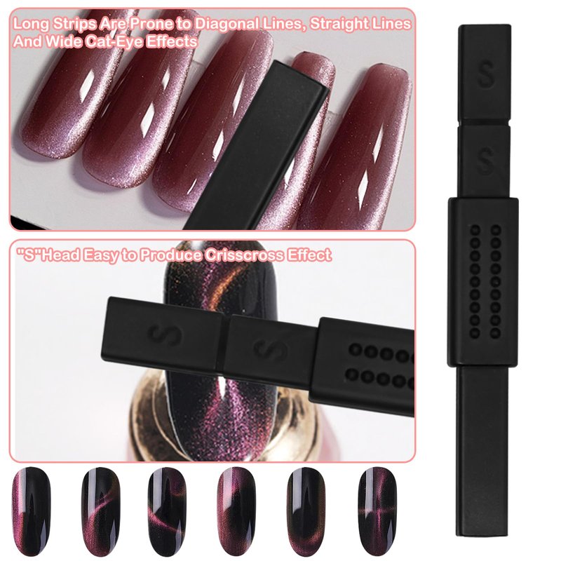 - 【Easy to Use】After applying the cat eye gel nail polish to your nails, keep the cat eye magnet close to your nails for 10-15 seconds, adjust the angle and position of the magnet according to your needs, and finally illuminate it with UV light for 60 seconds, you will get a gradient effect. NOTE: The closer the nail tool is to the nail, the better the cat eye effect will be.