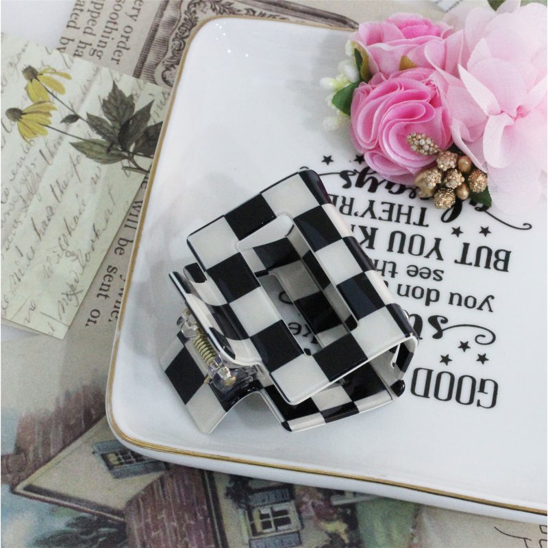 - ★Good design: Classic black white checked pattern. There are 4 different hair clips shapes, including square and semicircle, enough to match your different hairstyles.