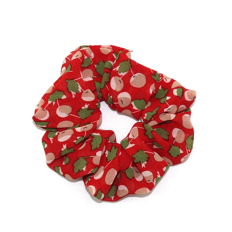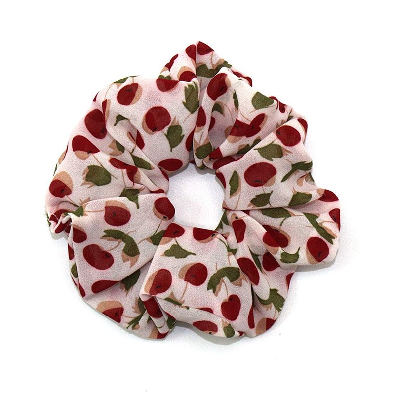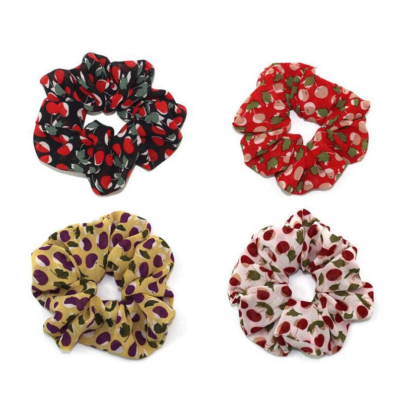4PCS Elastic Creative Cherry Pattern Hair Scrunchies Hair Bands Chiffon Fabric Hair Ties Scrunchy Hair Rope Ponytail Holder for Women