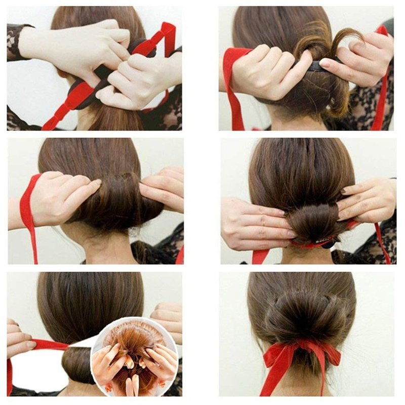 Ruihfas 4Pcs Elegant Ribbon Magic French Twist Bun Maker Clip Hook Holder Magic Roll Rings Donut Updo Chignon Former Pads Foam Sponge Hair Style Curler Braid Ponytail Stick Hairstyle Styling Tool Accessories