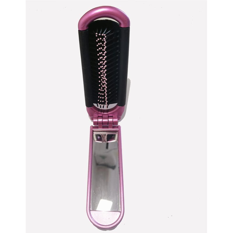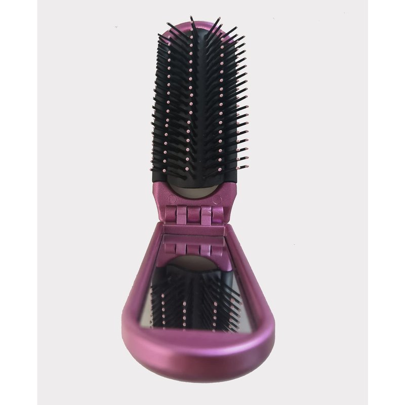 4Pcs Folding brush with mirror, mini travel hair brush for women with portable small compact foldable flip feature for pockets, wallets, bags, purse(Purple, blue, silver, white)