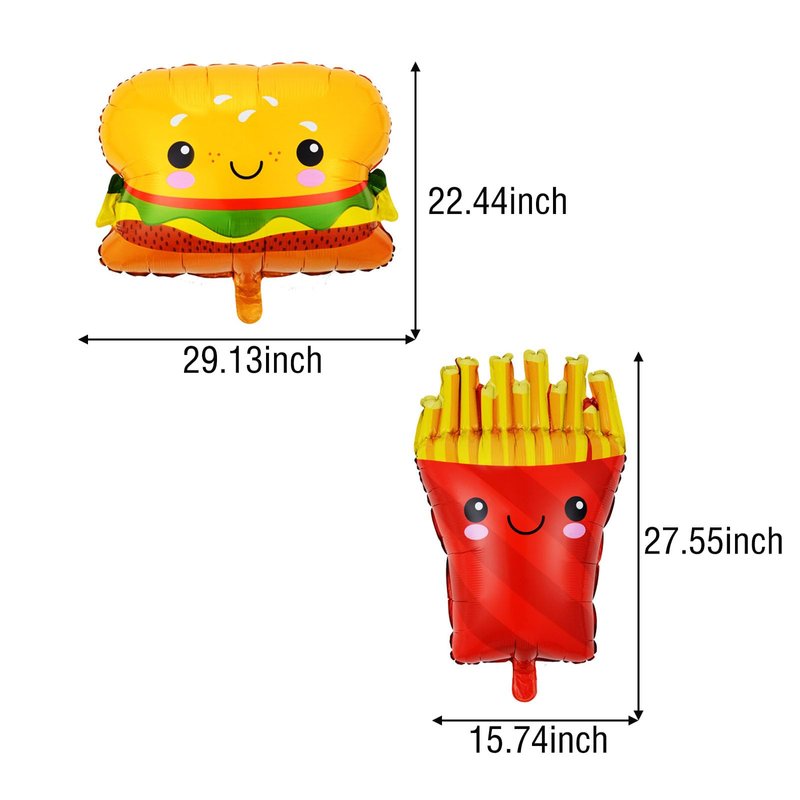 - Package Included: 2pcs French Fries Shape Foil Balloon,2pcs Hamburg Foil Balloons,Totally 4PCS.Perfect for Fast Food Theme Party Decorations