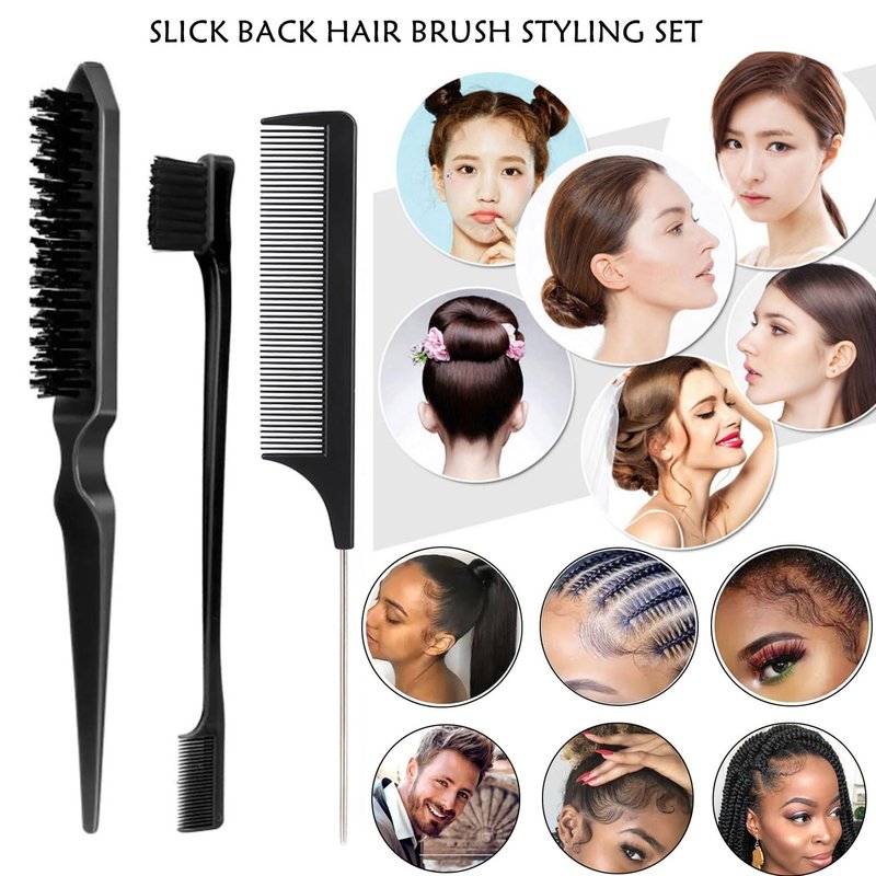 this set includes three high-quality combs: a Rat Tail Comb, Teasing Brush, and Edge Brush. Each comb is designed with precision and durability in mind, featuring the perfect distance between teeth to prevent hair breakage or scalp damage. Whether you're sectioning hair for intricate braids or teasing for voluminous updos, these combs deliver professional-grade performance.