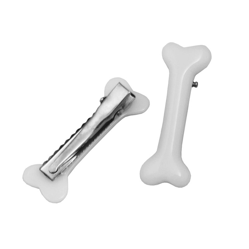 Description 4pcs Halloween White Dog Bone Hair Clips,Artificial Dog Bone Hairpins Alligator Barrettes Christmas Hair Accessories for Kids Girls. Features - Color: White. - Material: Resin. - Size: Approx. 5.5 x2 x 1.5cm. Package Including 4 x Hair Clips.