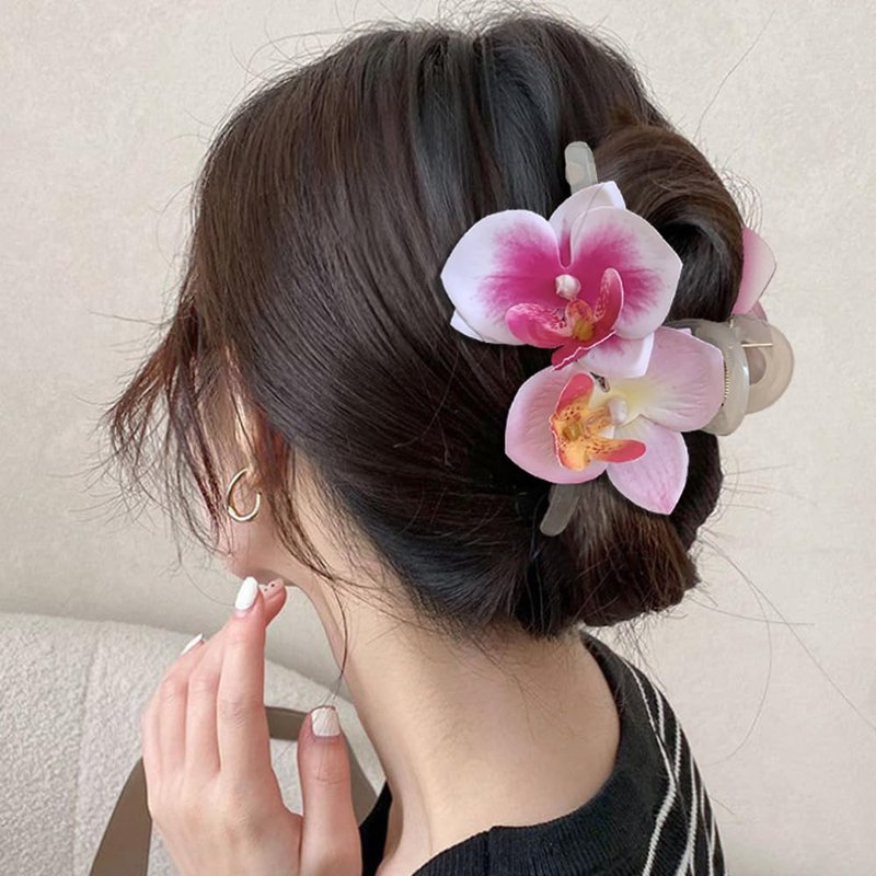 - 【Butterfly Orchid Large Hair Clips For Women】The phalaenopsis amabilis flower hair claw clips can be applied to various occasions, such as weddings, dances parties, beach parties, daily life, work, school, holidays, etc. adding a touch of charm and beauty to your hair.