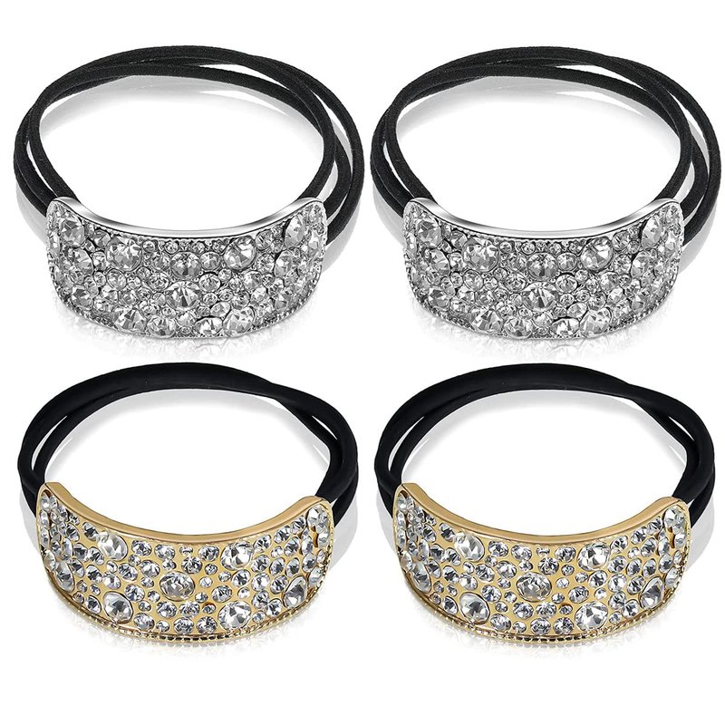 Package content: 4pcs shiny rhinestone hair rope tie ponytail holder