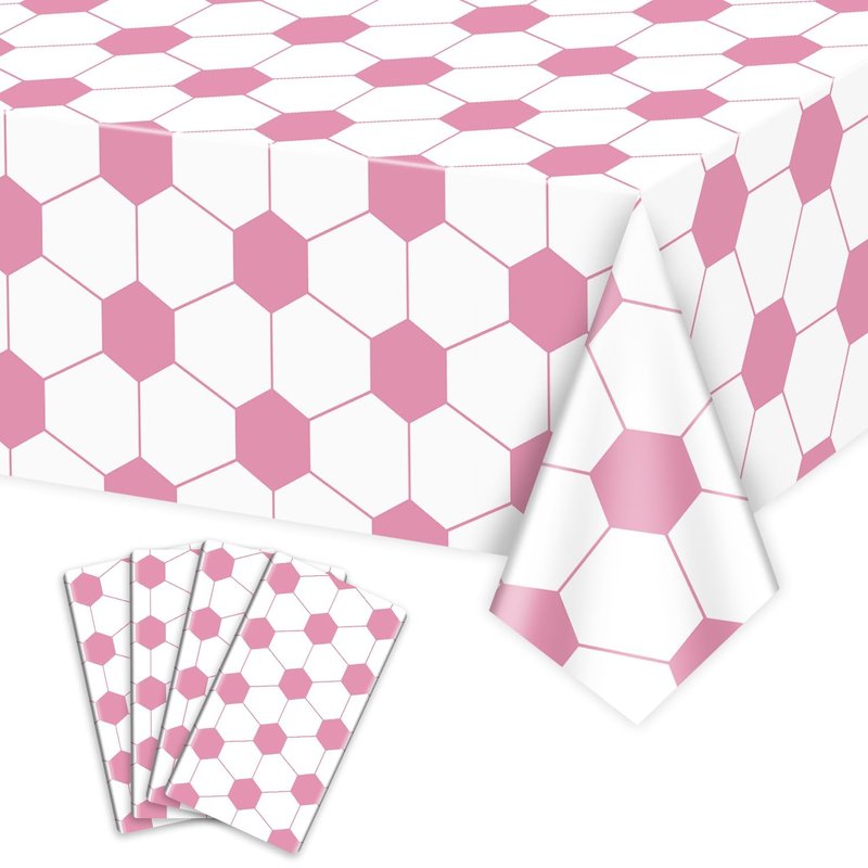 4Pcs Soccer Tablecloths, Pink Soccer Pattern Party Table Cover, Rectangular Sports Ball Soccer Party Decorations for Her Girls Fan Sports Event Soccer Birthday Party Supplies, 51 x 86.6 Inch
