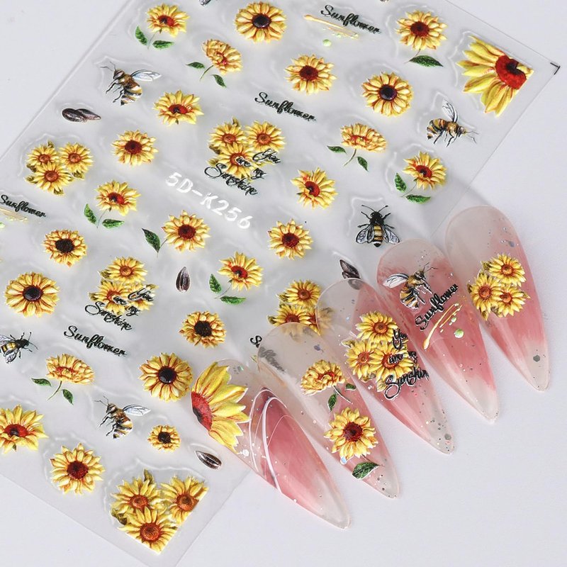 - 【Easy to Use】5D sunflower nail stickers are self-adhesive design, just pick up your favorite pattern with tweezers, cover it on your nails, press lightly to get a nail salon effect. Likewise, if you want to remove them, just peel them off.