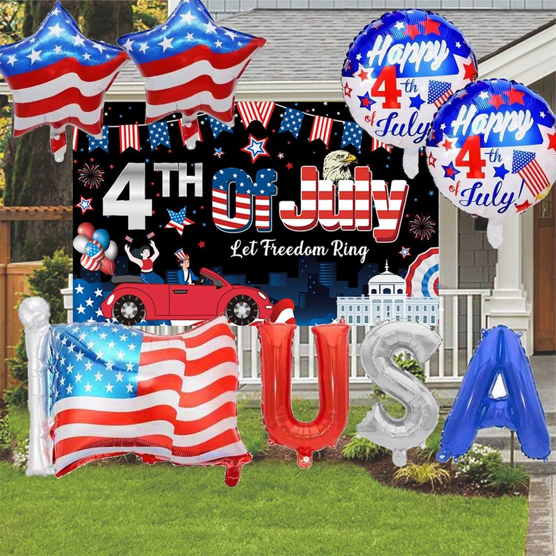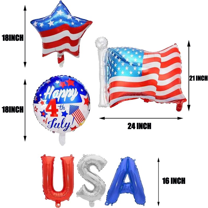 - ✿【 Fourth of July Balloons Decorations Set 】You will get 1 set 16" USA letter foil balloons, 1pcs 24x21 inch flag foil balloon, 4pcs 18" patriotic star foil balloons, 3pcs 18" 4th of July foil balloons.