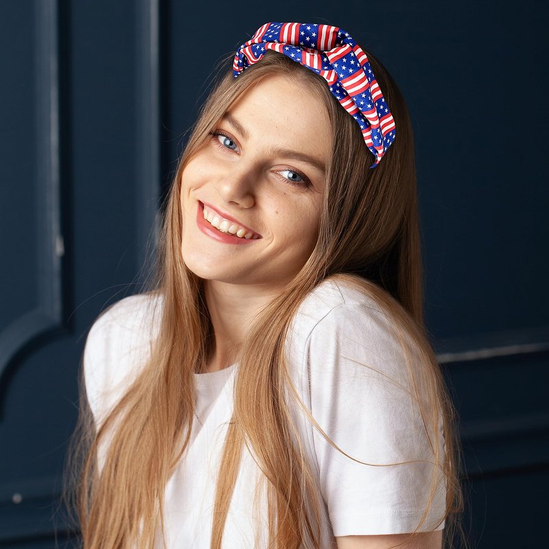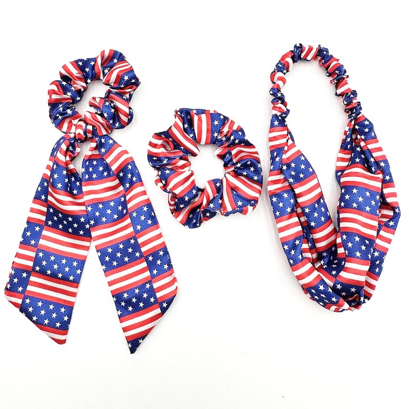 - 4th of July Hair Accessories Set - Including 3pcs x American flags print hair accessories for women girls. 1pcs twisted turban headband head wrap, 1pcs scrunchies hair tie,1pcs elastic hair tie with long tail.