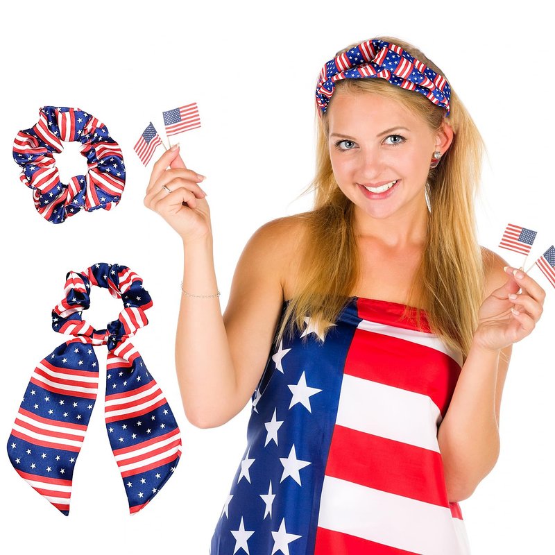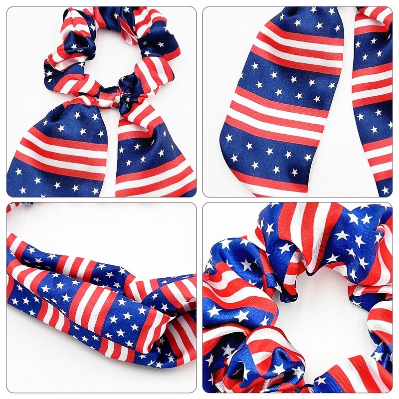 - Durable Material - USA hair accessories are made of soft and smooth polyester with stretchy,USA bandana headband: 15cm/6inch; length Independence day of hair scarf tie: 35cm/14in,American flags hair scrunchies: 12cm/4.7in.
