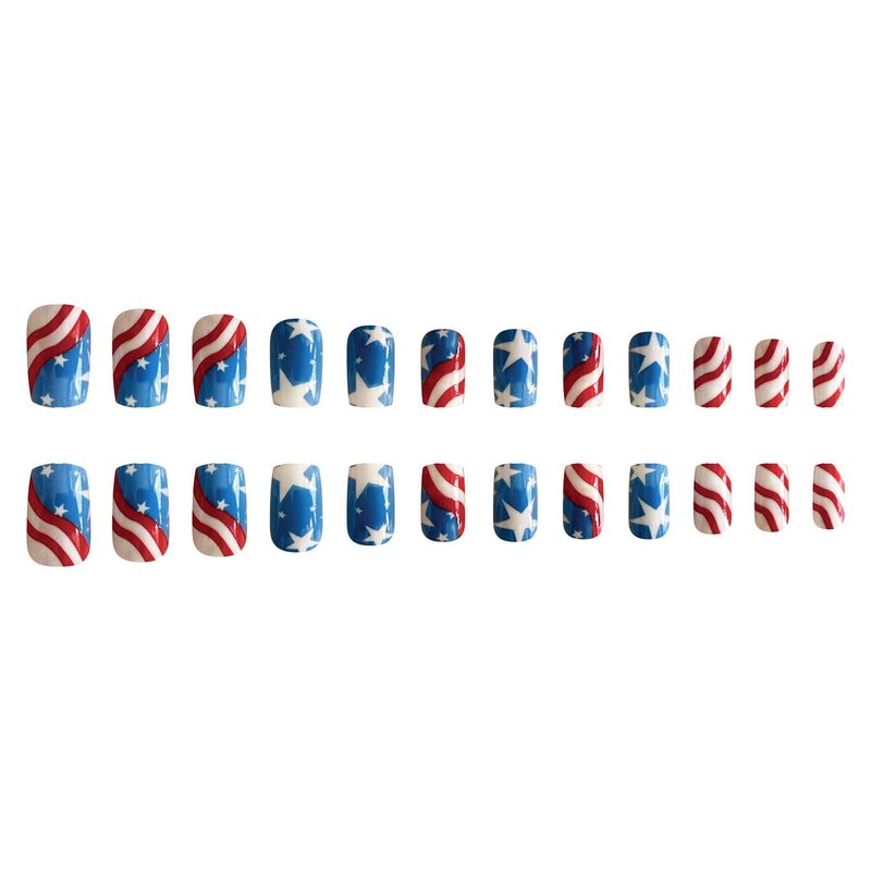 - No need to spend a lot of time and money at the nail salon, you can change your nail style in 12 minutes anytime, anywhere. If you want your American flag fake nails to get a better lasting effect, we recommend you use nail glue and jelly glue at the same time to get a lasting effect of more than 14 days. (Note: We don't offer nail glue)