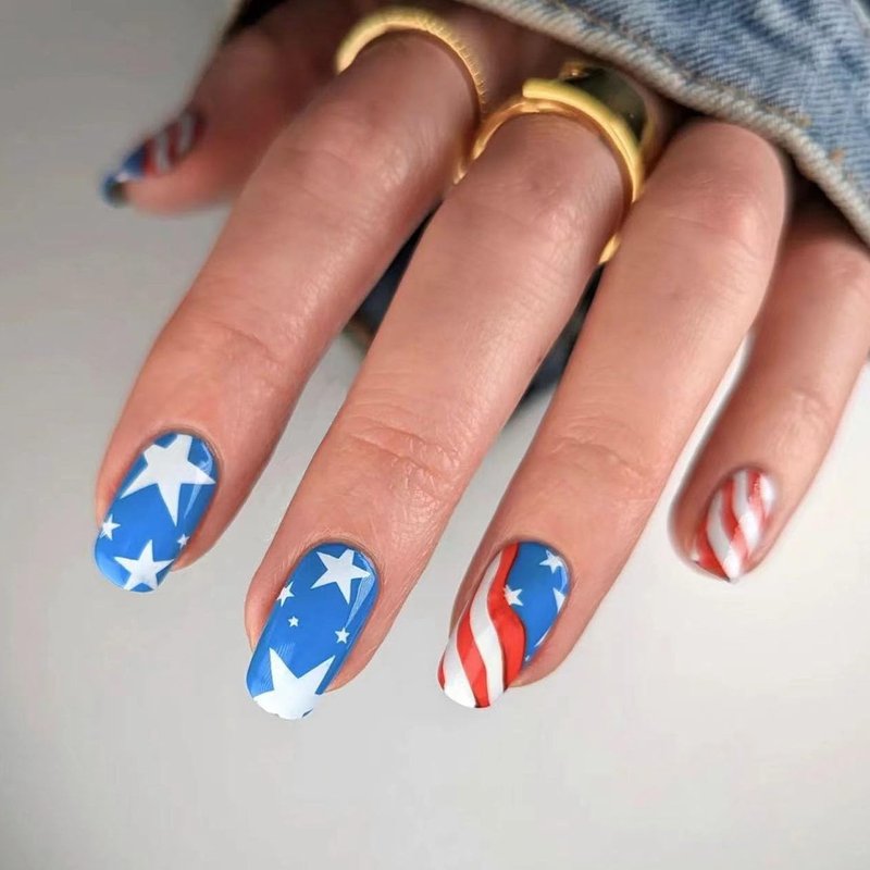 - 4th of July press on nails, beautiful nails specially designed for Independence Day in rich colors and classic American flag patterns, offer you the most popular colors, shapes and lengths for every patriotic person.