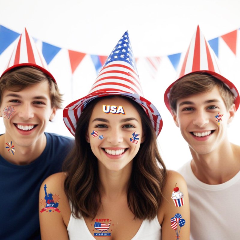 - LASTING AND DURABLE: 4th of July Temporary tattoos are tested and guaranteed to last all day, the tattoo stickers won't wear out from water and friction once applied.