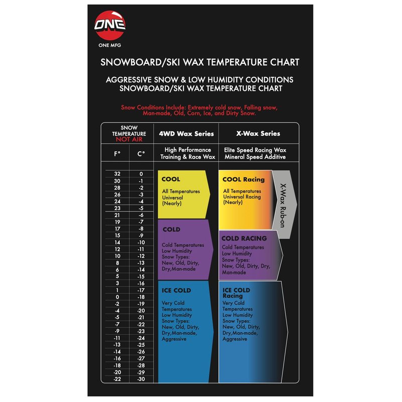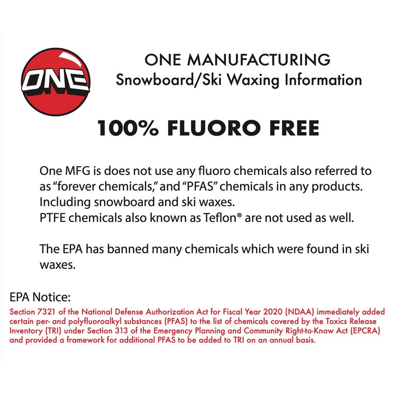 - ONE MFG'S 4WD WAX FOR SNOWBOARDS & SKIS - Specially formulated blends of hydrocarbon waxes that provide great performance without the use of any additives, at a price that we feel offers the best value in the industry.
