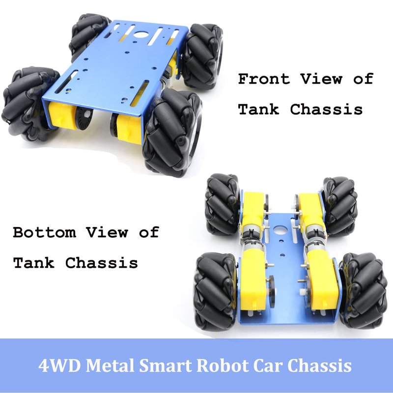 - HIGH QUALITY -- Mecanum wheels are made of high hardness plastic with low pulsating noise. Not easy to be damaged and deformed. This mecanum wheels robot chassis kit is robust and long lasting. This car chassis can be used in maker education kits, school robotic competitions or robotics learning.