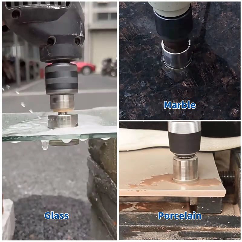 Wide application of the Tile Hole Saw: coated core drill bit removes a complete circle from glass, tiles, marble, granite, ceramic or other materials and only needs water for lubrication.