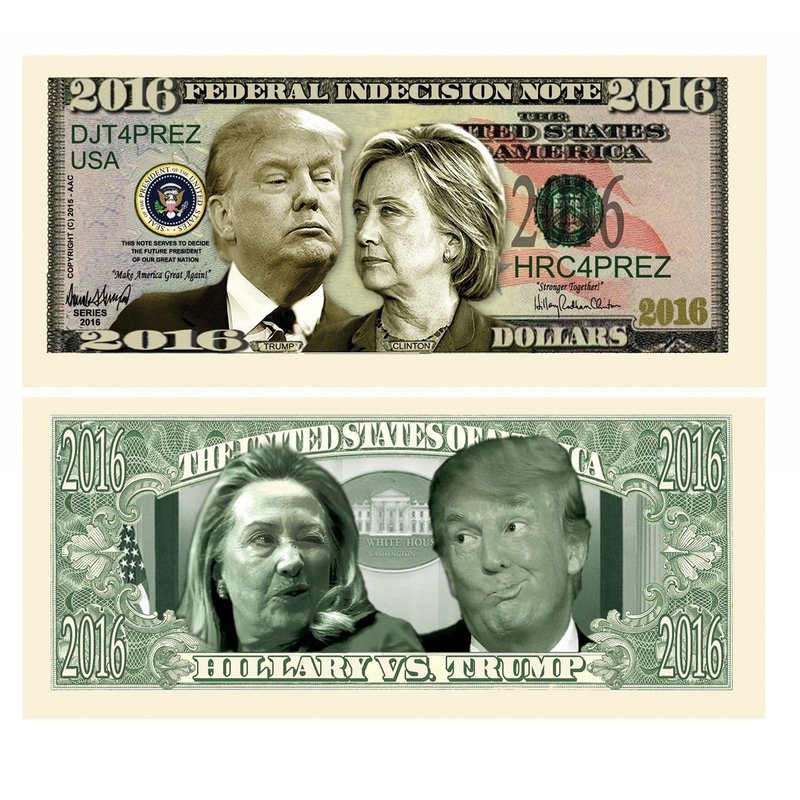 5 Donald Trump VS Hillary Clinton Indecisive Note with Bonus “Thanks a Million” Gift Card Set