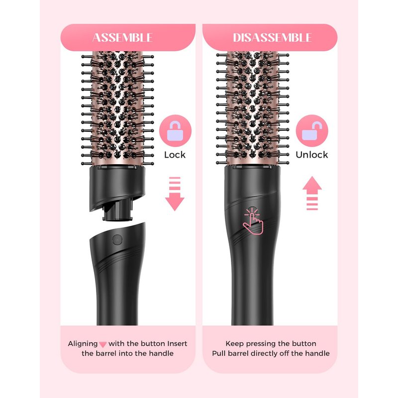 - 【More Care for Your Hair】: The new upgraded thermal brush engineered longer bristles with cool beads provided gentle detangling, helping to wrap the hair around the barrel for a smooth styling, 4X reduce hair loss!! And the nylon pin bristle with cool beads provides anti-scald protection while massaging the scalp for a more comfortable experience. The fewer heat dissipation hole enhances heat gathering and ensures even heat distribution, to create smooth and long-lasting curls