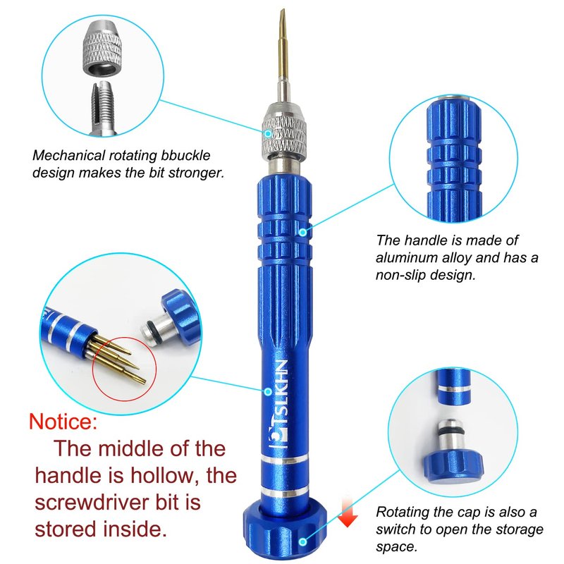 - [High Quality] Excellent repair tool kit. The handle is made of aluminum alloy, which is light and portable. The driver bits are made of high-quality S2 material, more sturdy and durable.