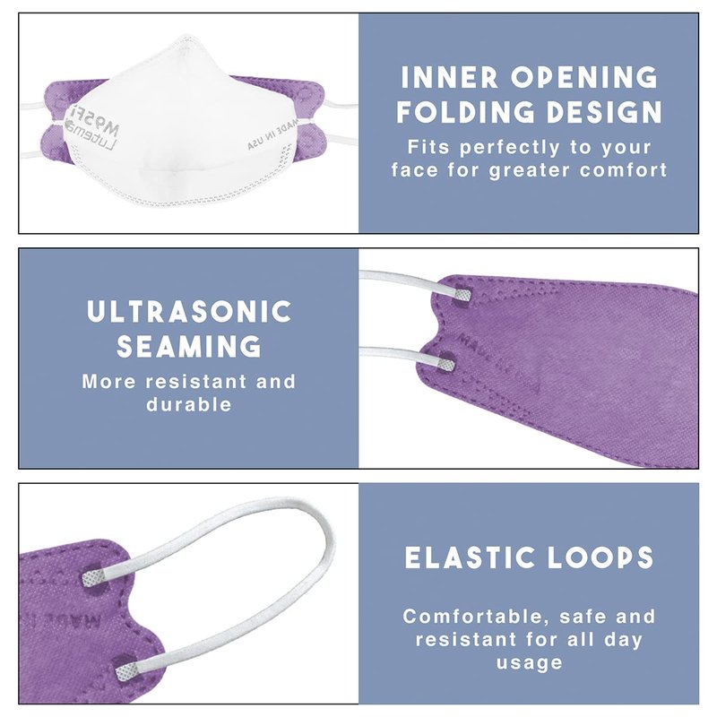5 Layer Protection Disposable Adult Face mask with 3-Panel Flat Fold Design Structure for Indoor & Outdoor Usage│Made in USA - (5 pcs) (Lavender Purple)
