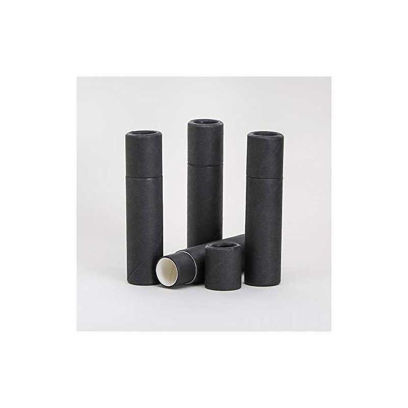 Size : 16mm x 65mm | 0.15 Ounce / 5mL | Due to the compact size, the push up bottom is smaller than usual. Using your pinky, a small pen, or any similar object works great. | BLACK color, see our page for the traditional brown color & white. More sizes available | The days of filling up landfills with used plastic lip balm / salve / lotion bar containers is over. What is the point of making your own organic balms and salves with love and care only to put them in plastic containers that will NEVER decompose? Your product can't be 100% natural unless the package it comes in is 100% biodegradable. These kraft paper push-up 100% recyclable tubes are a great eco friendly alternative to tubes made from petroleum based plastics. This Listing Is For : x25 5 mL BLACK Kraft Paperboard Containers