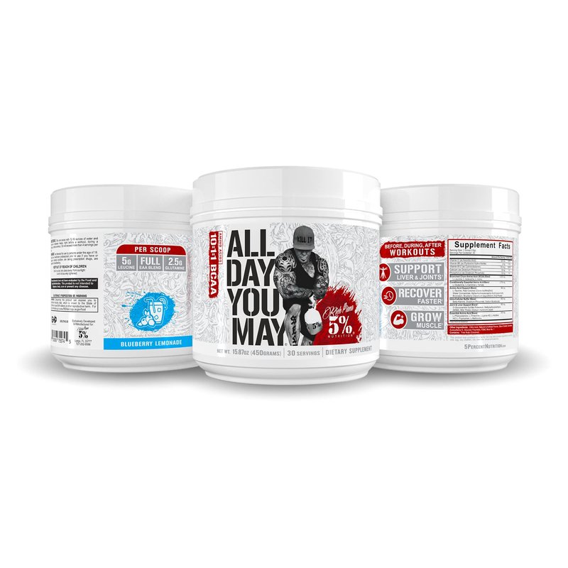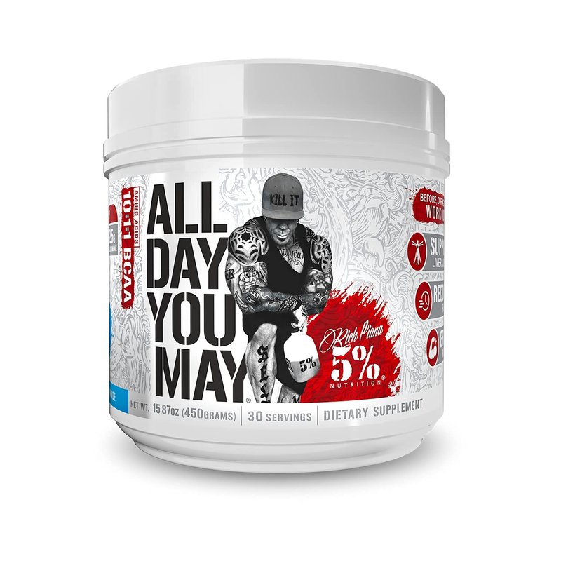5% Nutrition Rich Piana AllDayYouMay BCAA Powder | Premium Intra & Post Workout Amino Acids, Hydration, Endurance, Muscle Recovery, Joint & Liver Support | 15.9 oz, 30 Servings (Blueberry Lemonade)